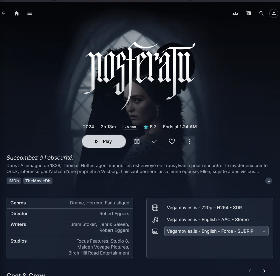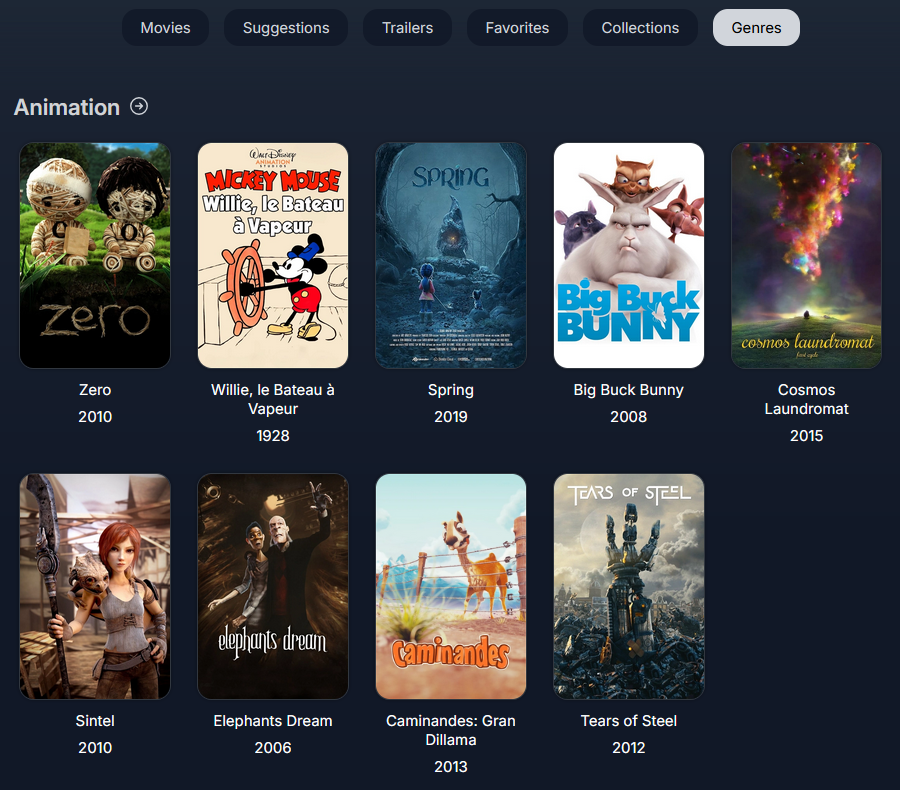 Vivéo étant basé sur Jellyfin, une grande partie du travail visuel était déjà réalisée. Cependant, je me suis permis d’ajouter certaines fonctionnalités telles que :